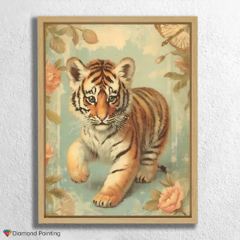 Dive into the fascinating world of big cats with our captivating Diamond Painting “Baby Tiger”! This impressive motif captures the still delicate, yet already majestic aura of a young tiger, a symbol of strength, grace, and untouched wilderness. Each glittering stone helps you bring its distinctive stripes, piercing eyes, and the vibrant energy of this cub to life. It is a tribute to the beauty and power of wild animals and a reminder of nature’s preciousness. An ideal Diamond Painting for anyone with a fondness for exotic animals, who appreciates the elegance of big cats, and wants to make a powerful statement in their home.