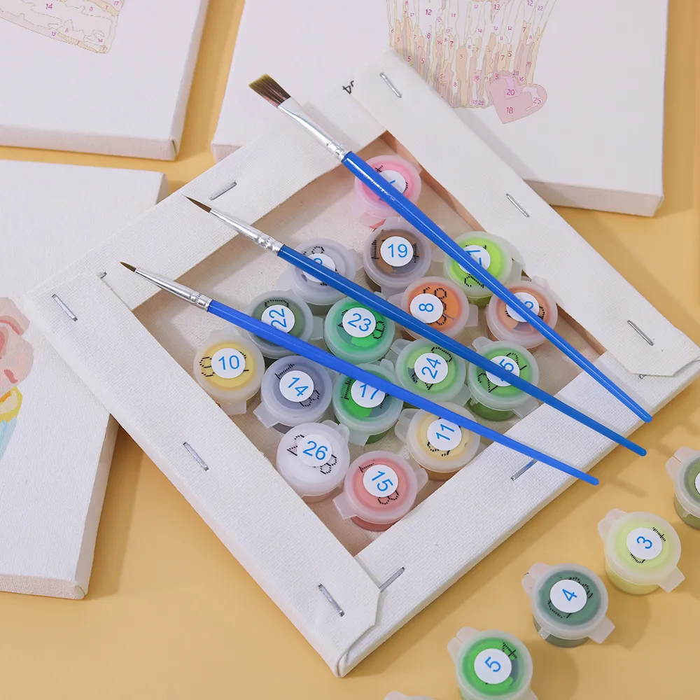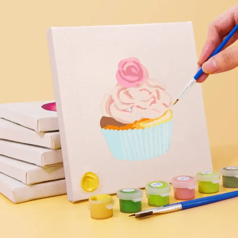 The “Cakes and Donuts” Mini Paint by Numbers set is a sweet treat for creative minds. Colorful donuts with sprinkles and lovingly decorated pieces of cake make this motif a real treat on the canvas. Ideal for children, beginners or as a small gift for those with a sweet tooth. The mini canvas, numbered acrylic paints and the fine brush ensure a relaxed and happy painting experience.