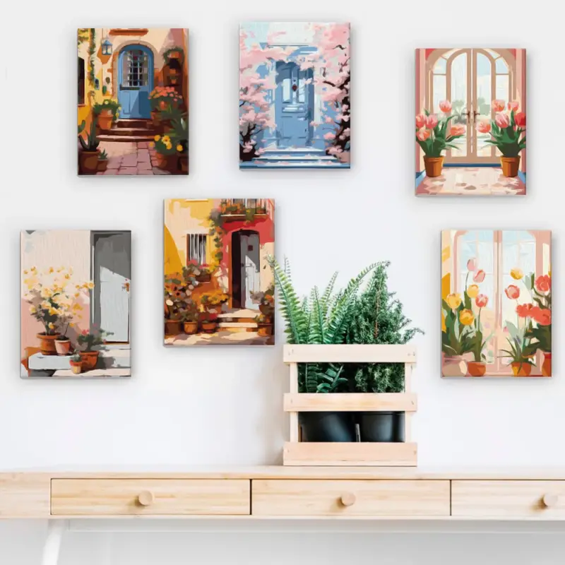 The “Charming Homes” Mini Paint by Numbers set features delightful buildings in colorful street scenes, sometimes dreamy, sometimes playful. Ideal for anyone who loves architecture and wants to relax creatively while painting. Whether Mediterranean facades, cottages in the countryside, or whimsical roofs – this mini set brings peace, color, and structure to the canvas. Included: pre-printed mini canvas, acrylic paints, and a brush for an easy start.
