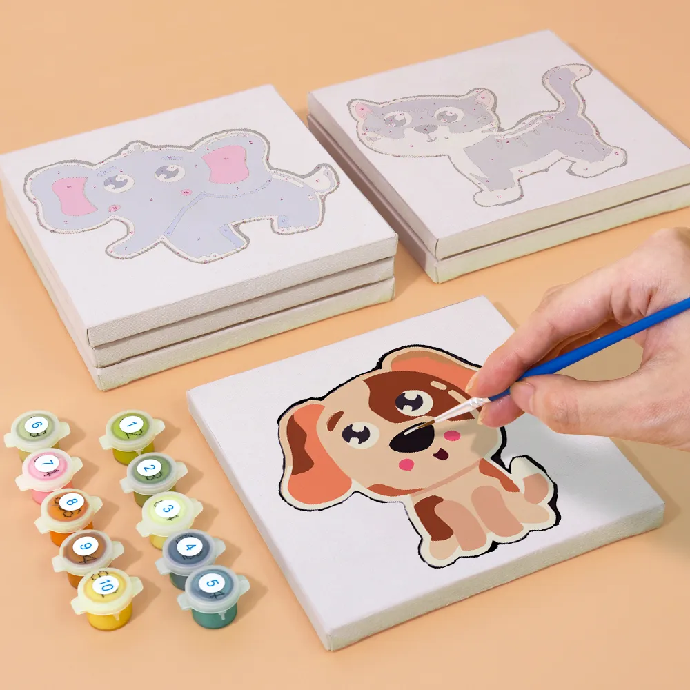 The “Cute Animals” Mini Paint by Numbers set brings animal fun and adorable motifs to the canvas. Whether small dogs, playful cats, or cheerful forest dwellers – this set delights children and animal lovers alike. Ideal as a gift, creative activity, or for relaxed painting moments in between. The pre-printed mini canvas, the colorful acrylic paints, and the brush make painting child’s play – even for beginners.