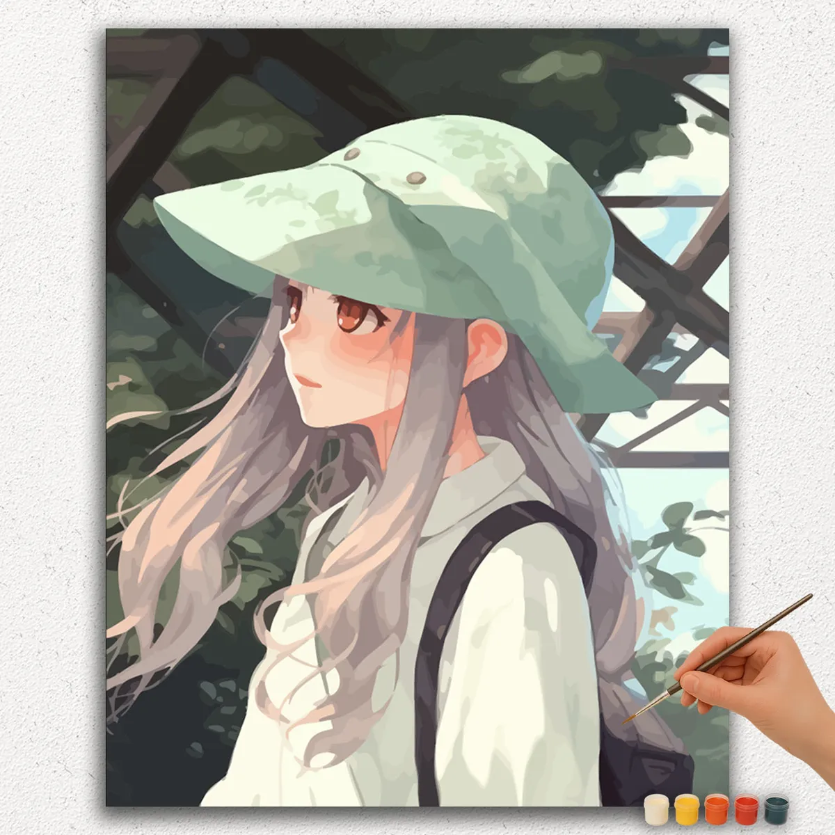 Bring your anime dreams to life with our Girl with Cap Anime Paint by Numbers Kit. This charming DIY masterpiece features a stylish anime girl wearing a trendy cap, capturing the essence of modern Japanese animation art.