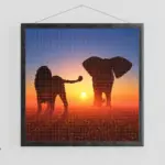 Experience the majesty of the wilderness with our breathtaking “Lion and Elephant at Sunset” Diamond Painting! This impressive motif captures the grace and strength of two iconic African wild animals, majestically presented against the warm backdrop of a sunset. With every glittering stone, you bring this peaceful scene to life and create a sparkling work of art that brings the beauty of nature and the grandeur of animals into your home. An ideal Diamond Painting for all lovers of wildlife and impressive landscapes.