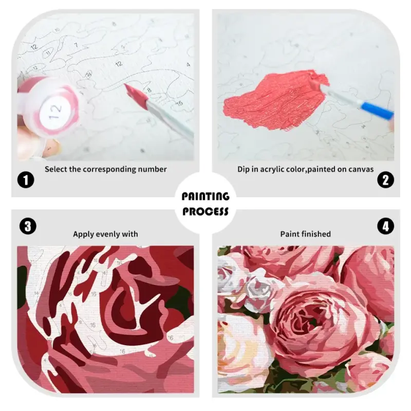 Paint by number process is very easy and straight forward you just need to follow the below instructions –