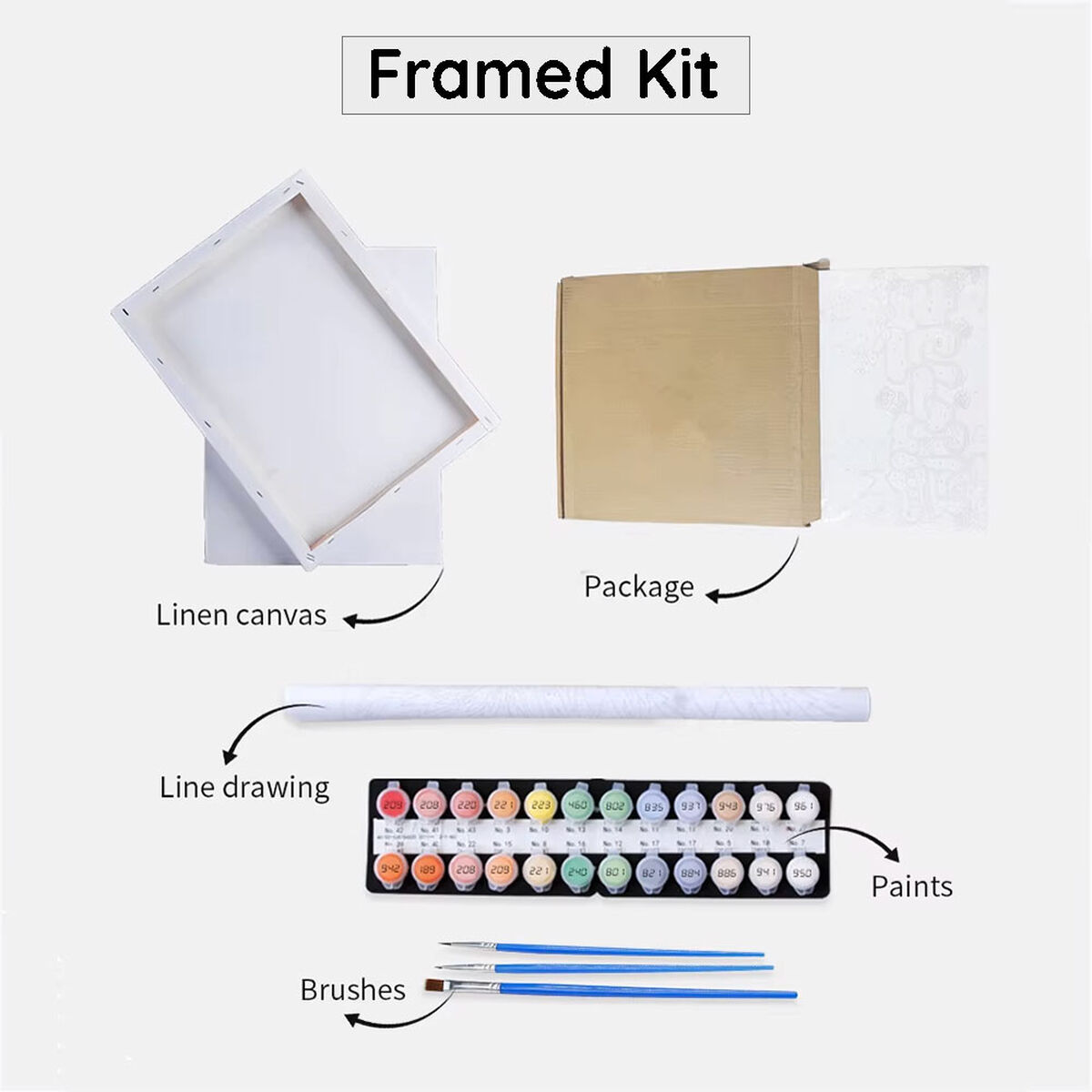 You will get all the tools and accessories and tools that are required to complete your paint by numbers project in the kit.