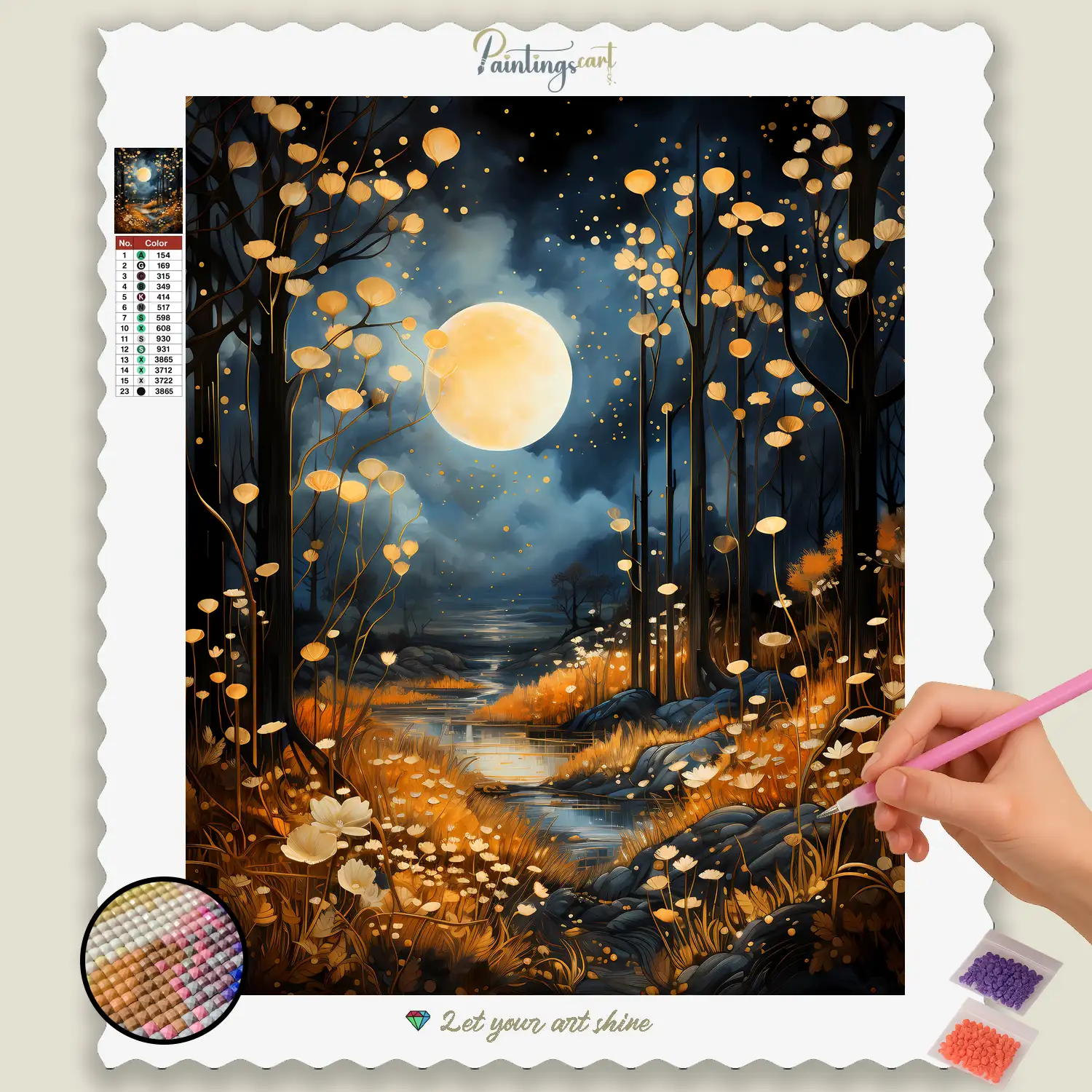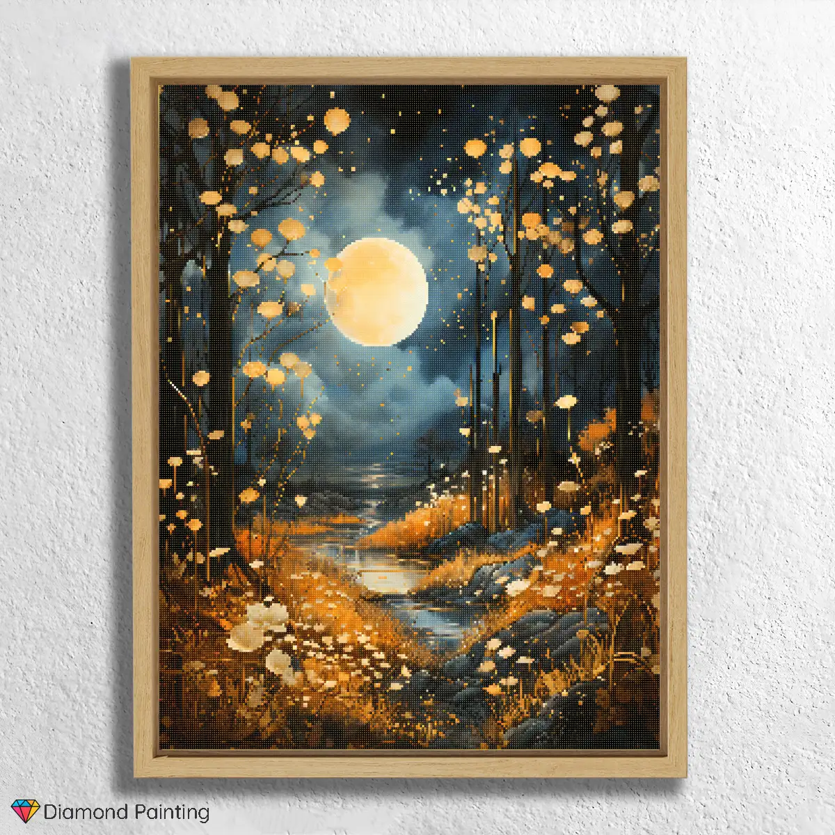 Immerse yourself in the silent magic of the night with our captivating Diamond Painting “Moonlit Forest”! This evocative motif captures the peaceful yet mysterious beauty of a forest bathed in the soft, ethereal light of the moonlight. Each sparkling stone helps you bring to life the shadow-playing trees, the mysterious paths, and the quiet, surreal atmosphere of nature at night. It’s a tribute to untouched nature, the fascination of the sky, and the endless stories the night holds. An ideal Diamond Painting for anyone who loves the mystical, longs for tranquility, and wants to bring a touch of stylish, nocturnal enchantment into their home.