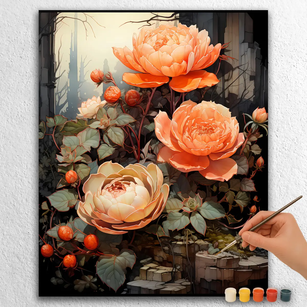 Poppies Flowers in Garden is a vibrant paint by numbers kit. It features beautiful poppies blooming in a lush garden, creating a serene landscape. This DIY art piece is perfect for beginners or experienced artists looking to unwind. With easy-to-follow instructions, you can bring this stunning scene to life using high-quality paints. The finished artwork will add a touch of nature’s beauty to any room.