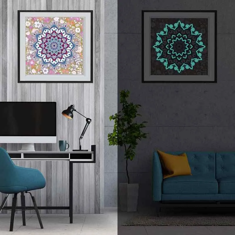 Experience a true kaleidoscope of colors that never stops shining, even in the dark! Our “Rainbow Glow Mandala” is a unique artwork that combines the harmonious symmetry of a mandala with an explosion of vibrant, luminous colors. By day, it’s a colorful eye-catcher, but by night, it comes alive: special glow-in-the-dark gems, integrated into the design, emit a soft, multicolored glimmer, highlighting its fascinating structure.