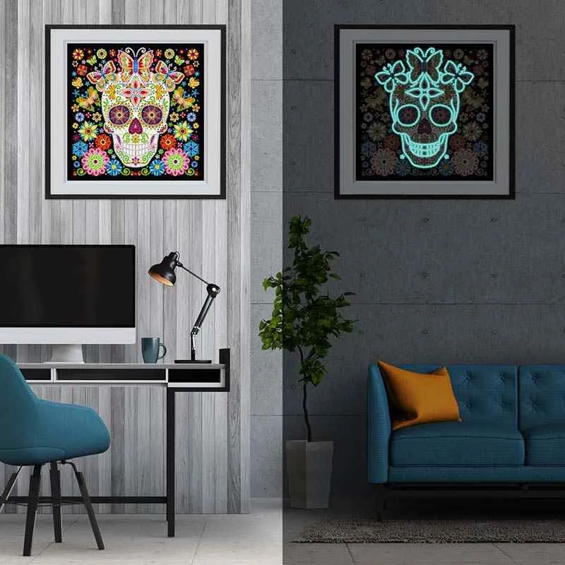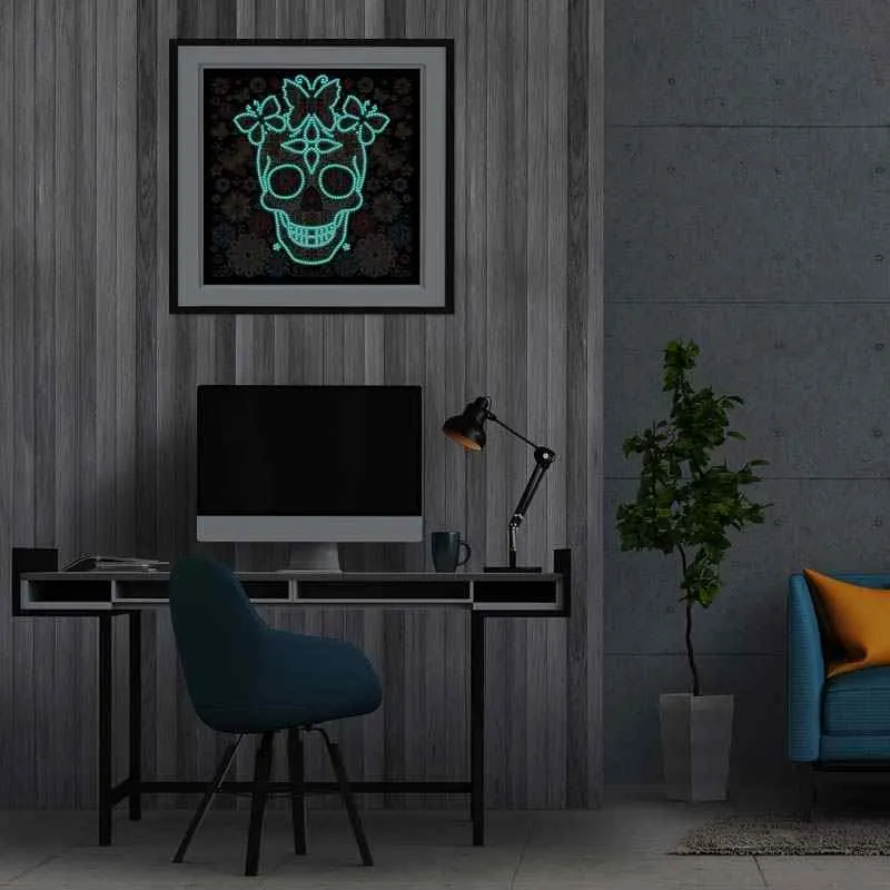 Skull & Butterfly – Glow-in-the-Dark Diamond Painting