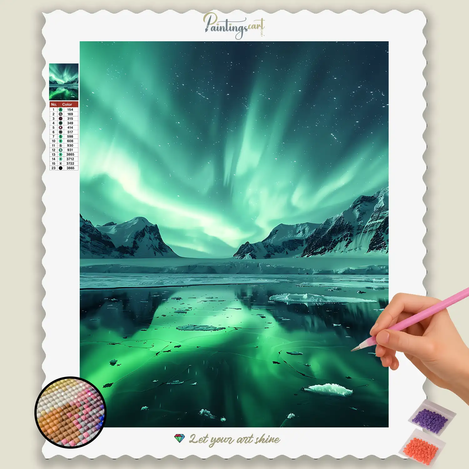 Be enchanted by the magical glow of the northern sky with our breathtaking Diamond Painting “Sparkling Aurora”! This unique motif captures the ethereal luminescence of the Aurora Borealis as it appears in a shimmering and sparkling dance across the dark sky. Imagine the soft greens, deep purples, and bright blues uniting in a truly glittering play of light. Each shimmering stone helps you bring to life the unreal movement, the luminous veils, and the infinite splendor of this natural wonder. It’s a tribute to the untouched beauty of arctic nature, the wondrous power of the universe, and the profound tranquility this spectacle radiates. An ideal Diamond Painting for anyone who loves the mysterious and wants to create an aura of wonder and serenity in their home.