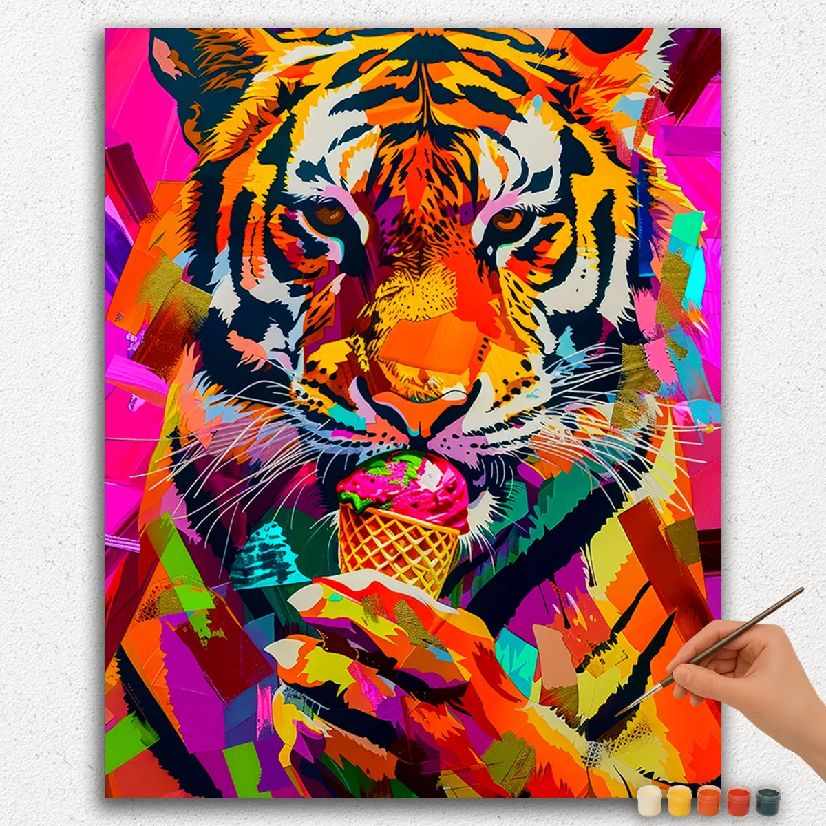 Bring a whimsical scene to life with this charming Paint by Numbers kit featuring a tiger enjoying ice cream. Perfect for both beginners and experienced artists, this kit lets you create a fun and unique artwork.
