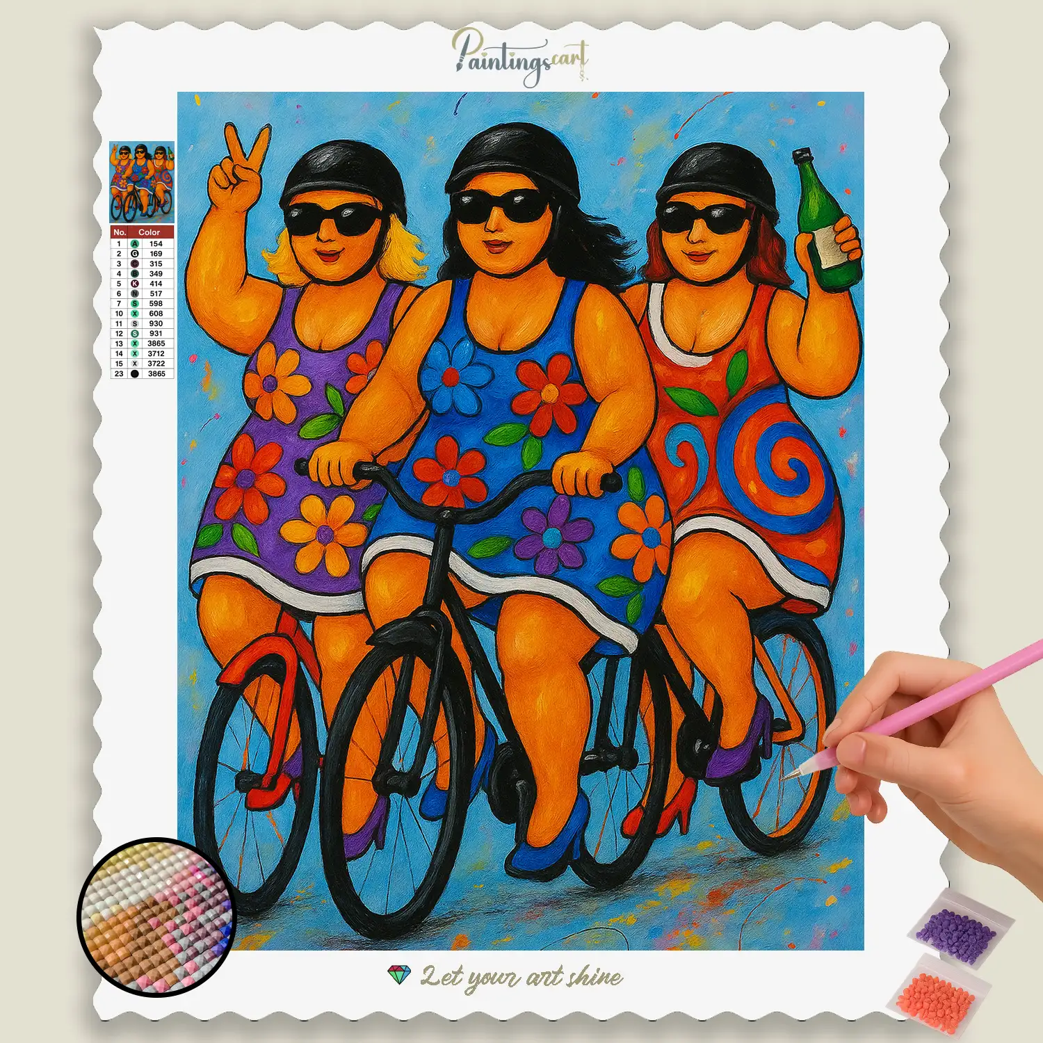 Create a sparkling masterpiece that invigorates the soul and creates an aura of boundless joy and carefree freedom. This high-quality Diamond Painting Set not only offers a wonderfully relaxing and captivating crafting experience but also a stunning result that you can proudly display in your living room, hobby room, or any other area that could use an extra dose of cheerfulness and dynamism. Whether as a charming eye-catcher, an inspiring addition to your collection, or as a perfect gift for cycling enthusiasts, friends, and anyone who appreciates the fascination of vibrant moments – this Diamond Painting artwork is a fabulous way to capture the appeal of the Vibrant Cycling Trio in Dresses in a glittering work of art.
