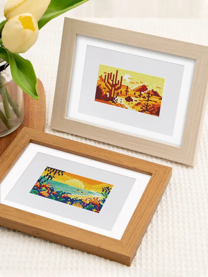Embark on a creative world tour with our 10-piece “World Tour Collection” set! This set from our Mini Diamond Paintings range is your ticket to the world’s most breathtaking places, all in a handy small format. In this package, you’ll find ten different, picturesque landscape motifs – from sunny beaches and majestic mountain peaks to tranquil forest lakes and colorful sunsets.