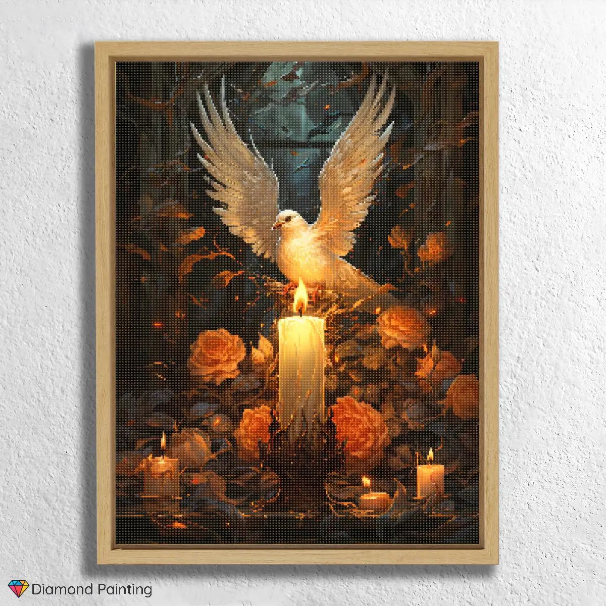 Find peace and spiritual light with our devotional Diamond Painting “Holy Dove and Candle”! This sublime motif captures the pure symbolism of a Holy Dove, often a sign of the Holy Spirit and peace, gently hovering over a glowing Candle. Each shimmering diamond helps you bring the dove’s delicate wings, the warm, golden light of the flame, and the aura of Divinity to life. It is a tribute to faith, hope, and the quiet beauty residing in these meaningful symbols. An ideal Diamond Painting for anyone seeking a source of inspiration, reflection, and deep religious meaning in their home.