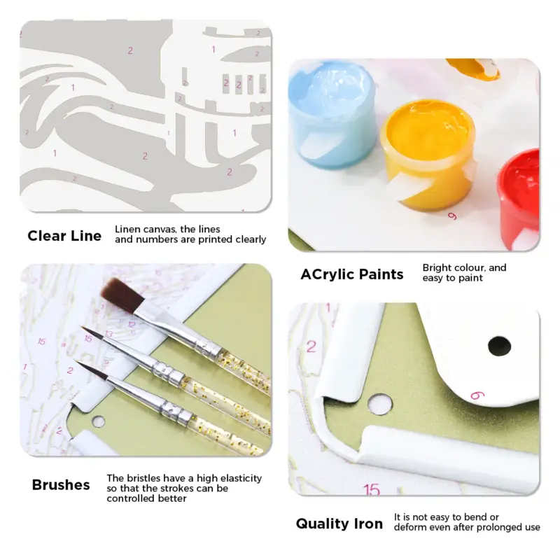 You will get all the tools and accessories required to complete your metal poster paint by numbers project in the kit.