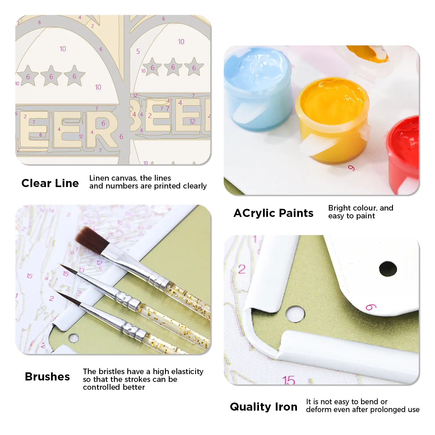 You will get all the tools and accessories required to complete your metal poster paint by numbers project in the kit.