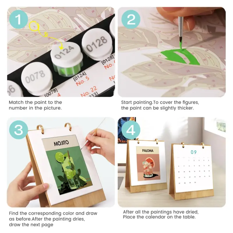 Immerse yourself in the world of stylish drinks with the Paint by Numbers Calendar 2026 – Classic Cocktails Edition. Each month presents an iconic cocktail – from Piña Colada to Mojito to Spicy Margarita – in an elegant graphic style that invites you to color and enjoy. Discover well-known bar classics in an artistic way and bring color and style to your home with every brushstroke.