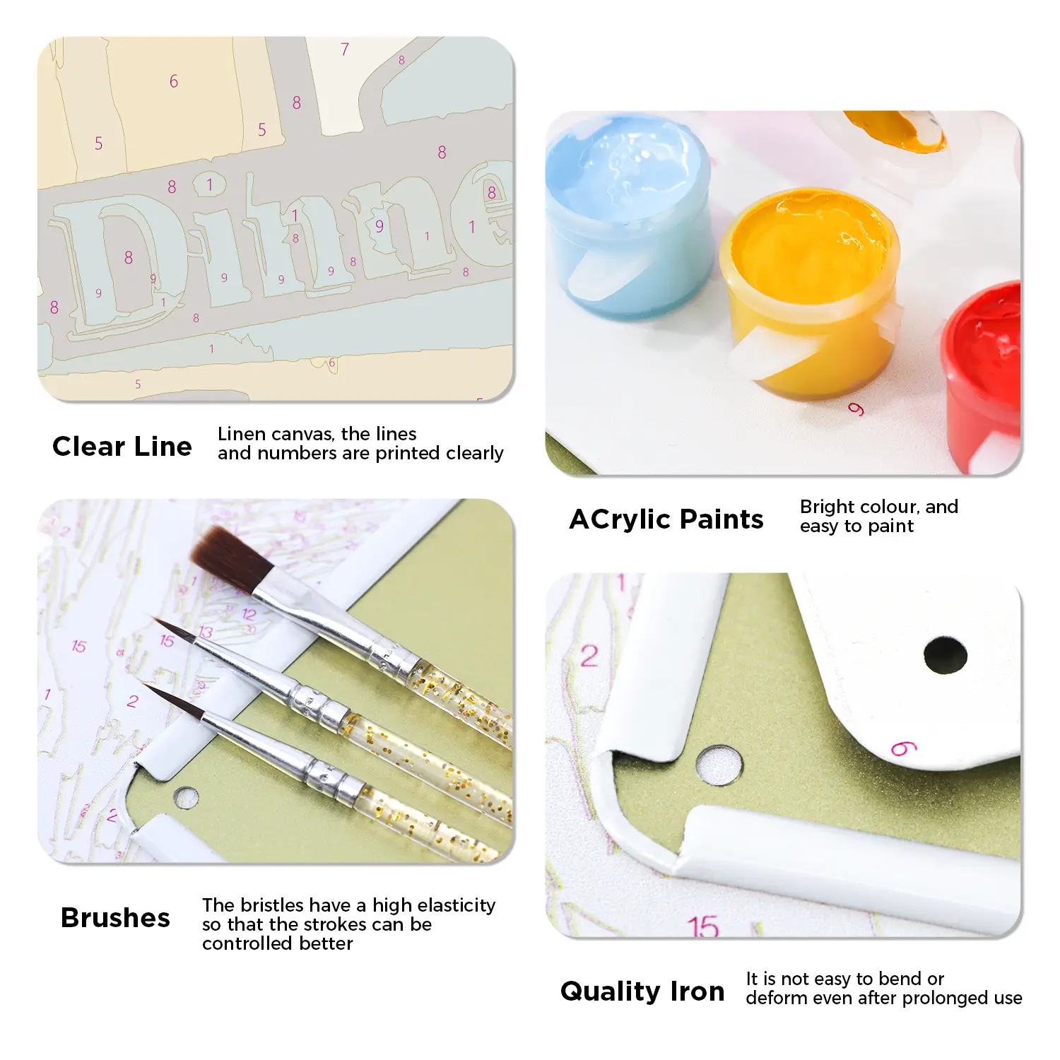 You will get all the tools and accessories required to complete your metal poster paint by numbers project in the kit.