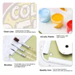 - Step 3: Dip the brush into the acrylic color pot and paint on the corresponding place on canvas.