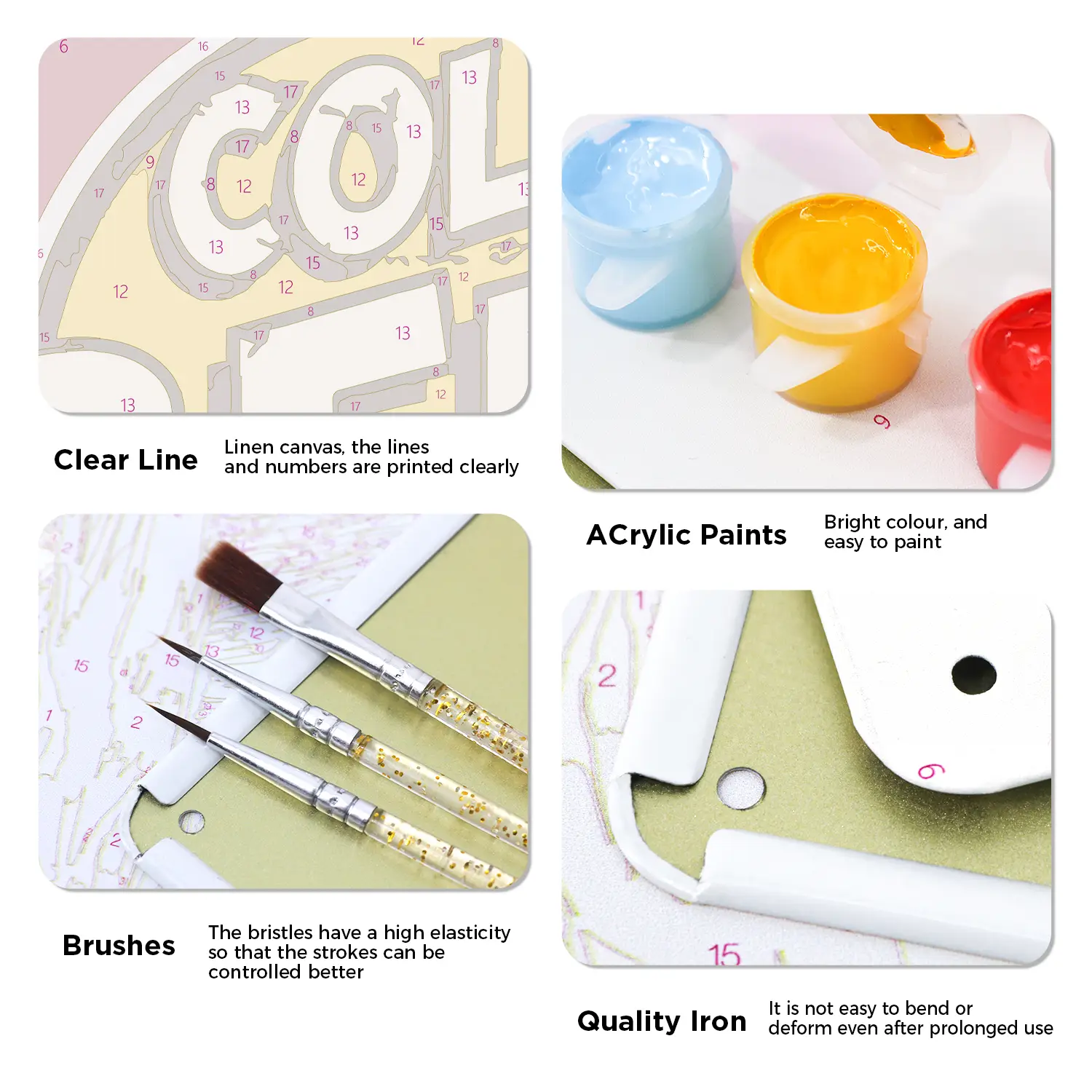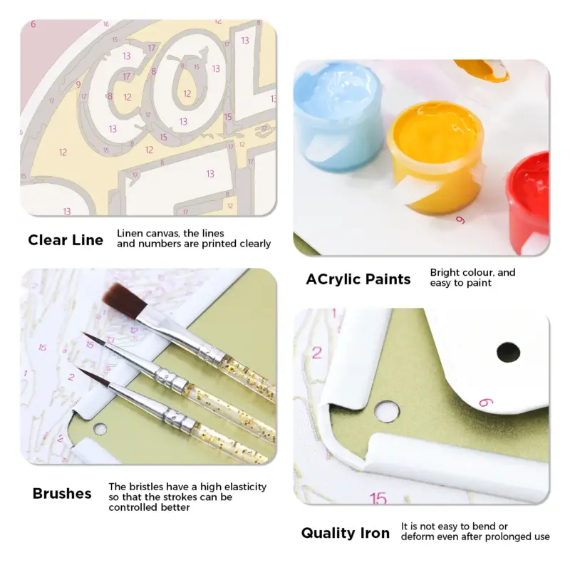 You will get all the tools and accessories required to complete your metal poster paint by numbers project in the kit.