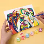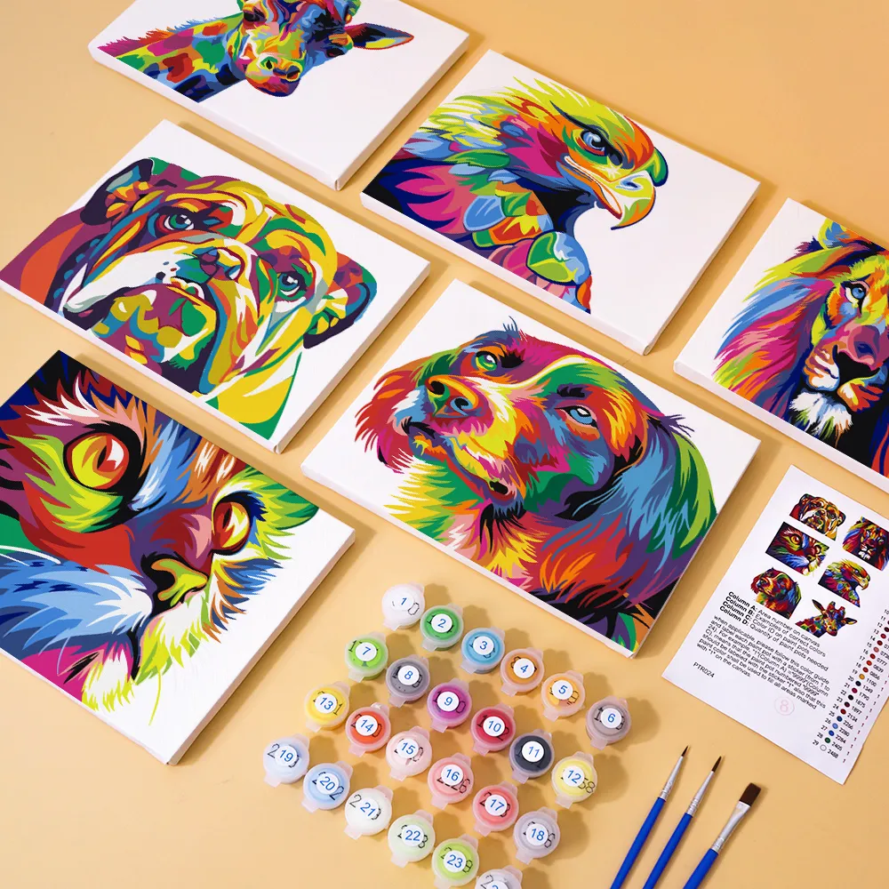 The “Colorful Animals” Mini Paint by Numbers set inspires with vibrant and imaginative animal motifs. Whether it’s a lion, owl, or elephant – the bright colors and creative details make this set a joyful painting experience. Thanks to its compact format, it is ideal for beginners, children, or as a small gift. With the pre-printed mini canvas, numbered acrylic paints, and matching brush, a unique work of art is created in no time.