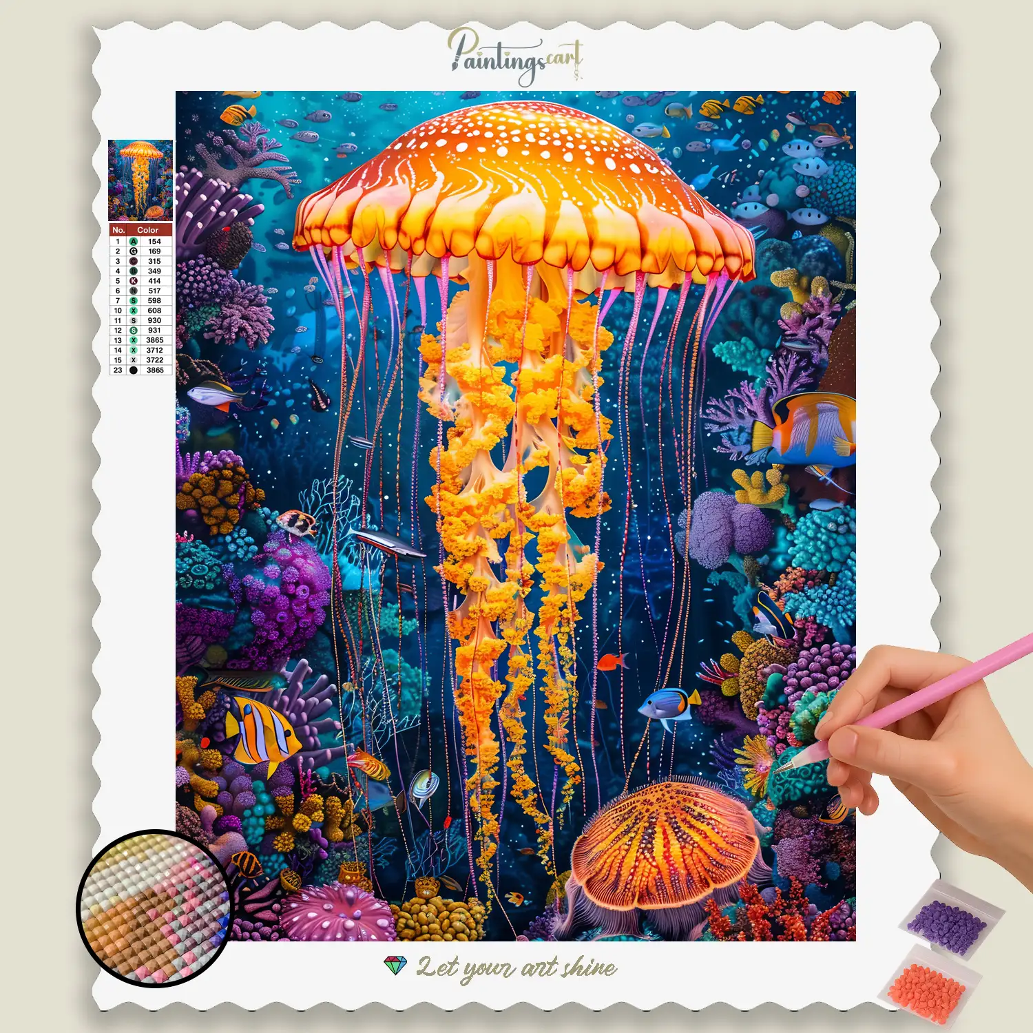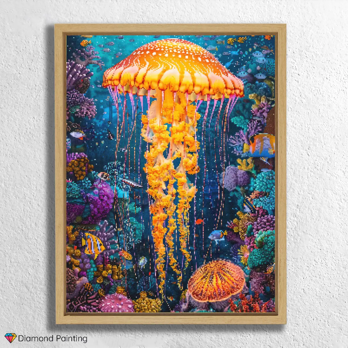 Dive into a world of ocean magic with our captivating Diamond Painting “Colorful Jellyfish”! This unique motif captures the dazzling and graceful essence of a jellyfish, floating in a hypnotic dance of colorful and luminous hues. Imagine its flowing tentacles, translucent bell, and gentle color transitions that transform this creature into a work of art. Each glittering stone helps you bring to life the mesmerizing effect of the colors, the intricate details of the body, and the dreamy atmosphere. It’s a tribute to the boundless creativity of nature, the symbolism of transformation, and the infinite beauty hidden in the depths of the ocean.
