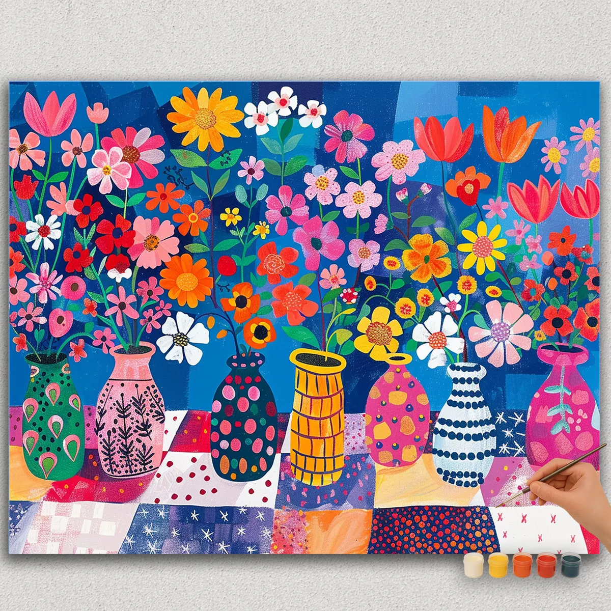 Transform your space into a colorful garden with our DIY Painting Kit – Colorful Pots and Flowers. This paint-by-numbers set lets you create a bright, cheerful artwork of blooming flowers in vibrant ceramic pots.