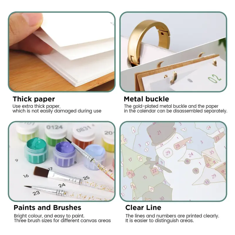 The Paint by Numbers Calendar 2026 – Cozy Christmas Edition is the perfect companion for anyone who loves Christmas and wants to enjoy the festive spirit all year round. With 12 lovingly designed motifs – from the festively decorated tree to Santa Claus and the cute reindeer – each month transforms into a small creative adventure.