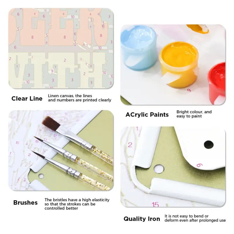 You will get all the tools and accessories required to complete your metal poster paint by numbers project in the kit.