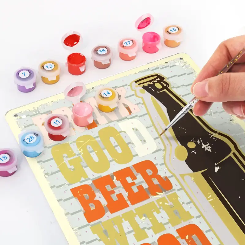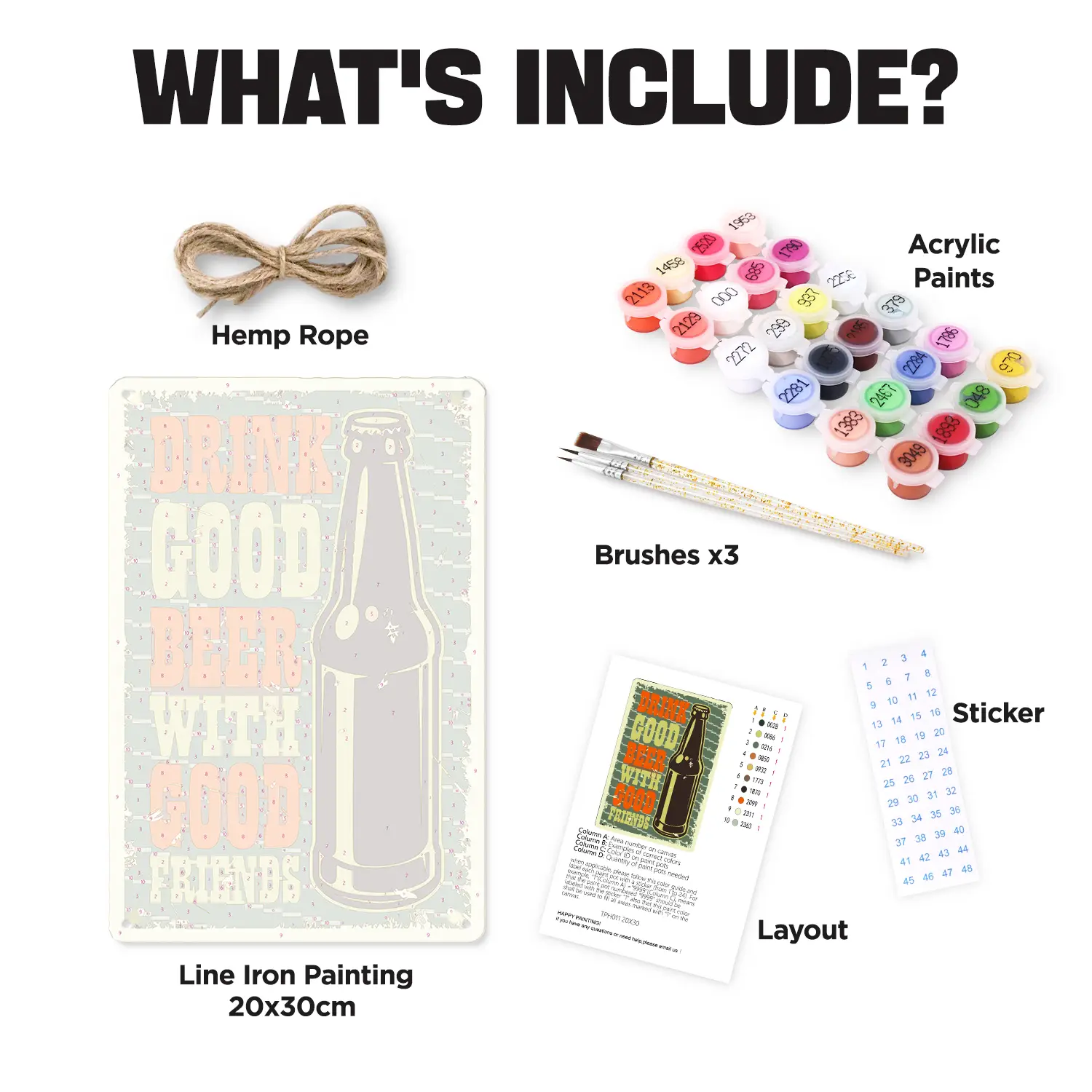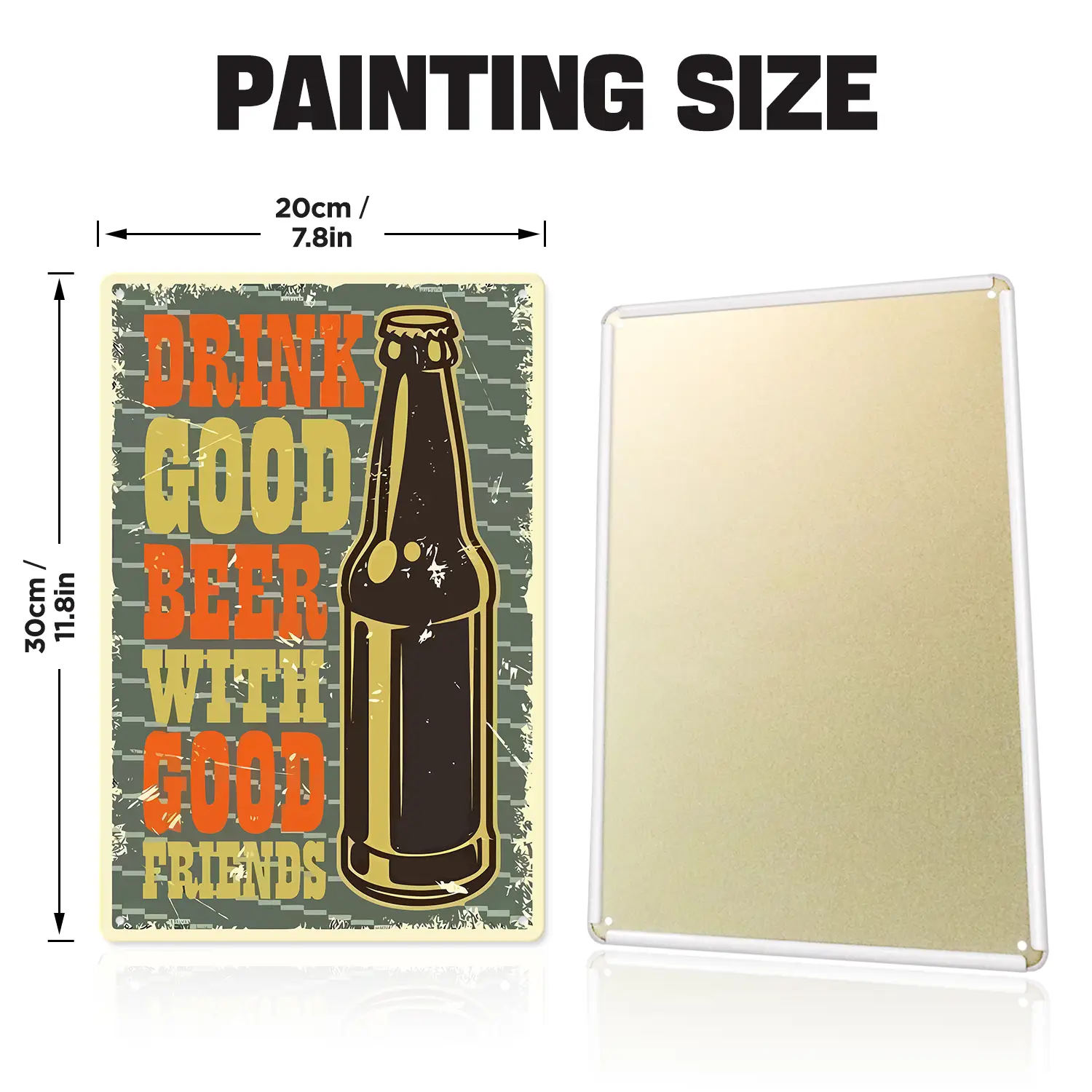 Enhance your bar or home decor with the Drink Good Beer DIY Metal Poster. This vintage-style poster measures 20x30cm or 7.8×11.8 inches and features rounded corners for a sleek look. Made from durable metal, it adds a touch of nostalgia to any room. Perfect for beer enthusiasts, this DIY paint-by-numbers poster allows you to create a unique piece of art that reflects your personality. Its compact size makes it ideal for small spaces, while its vintage design ensures it blends well with both modern and traditional decor.
