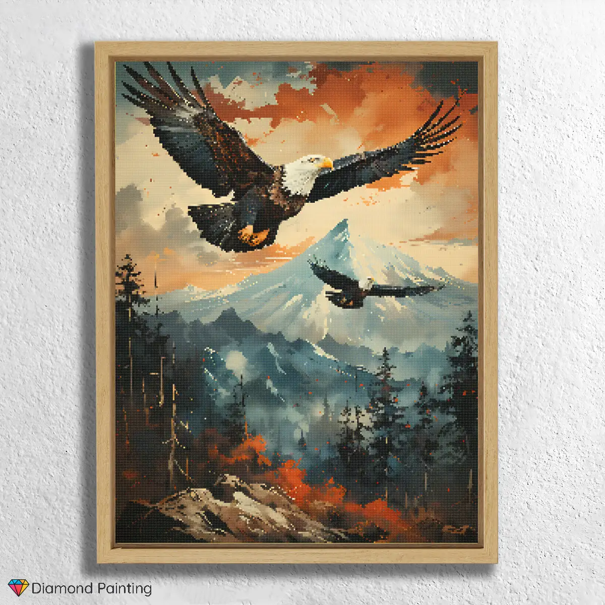 Experience the pure freedom of the peaks with our majestic Diamond Painting “Eagle Over the Mountains”! This breathtaking motif captures the sublime presence of an eagle soaring with outstretched wings high above imposing mountains. Each glittering stone helps you bring to life the powerful wings, sharp gaze, and infinite expanse of the alpine landscape. It is a tribute to the untamed power of nature, the symbolism of leadership, and the boundless freedom embodied by the king of the skies. An ideal Diamond Painting for anyone who appreciates inspiring animal motifs, the beauty of alpine landscapes, and an aura of grandeur in their home.