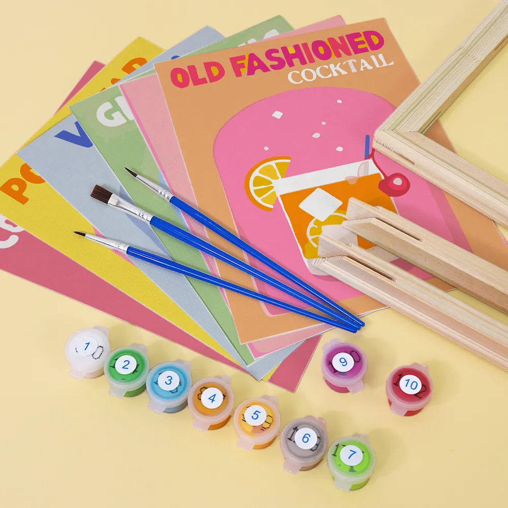 With the mini paint-by-numbers set “Famous Cocktails”, you can stylishly bring iconic drinks like Mojito, Margarita, or Cosmopolitan to the canvas. The colorful glasses and details make this design a real eye-catcher. The compact set is ideal for creative breaks, gifts, or starting painting. Thanks to the pre-printed mini-canvas, bright acrylic paints and fine brushes, even beginners can easily create the cocktails.