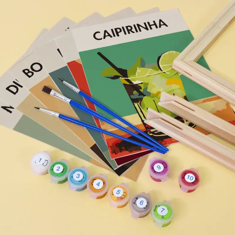 Enjoy elegant flair with the “French 75 Cocktail” Mini Paint by Numbers set. Inspired by the classic champagne cocktail with gin and lemon, this motif brings French chic to the canvas – stylish, sparkling, and colorful. The mini set is perfect for creative breaks, gifts, or as an introduction to the world of painting. The pre-printed canvas, vibrant acrylic paints, and fine brushes ensure a relaxed DIY experience with a touch of luxury.