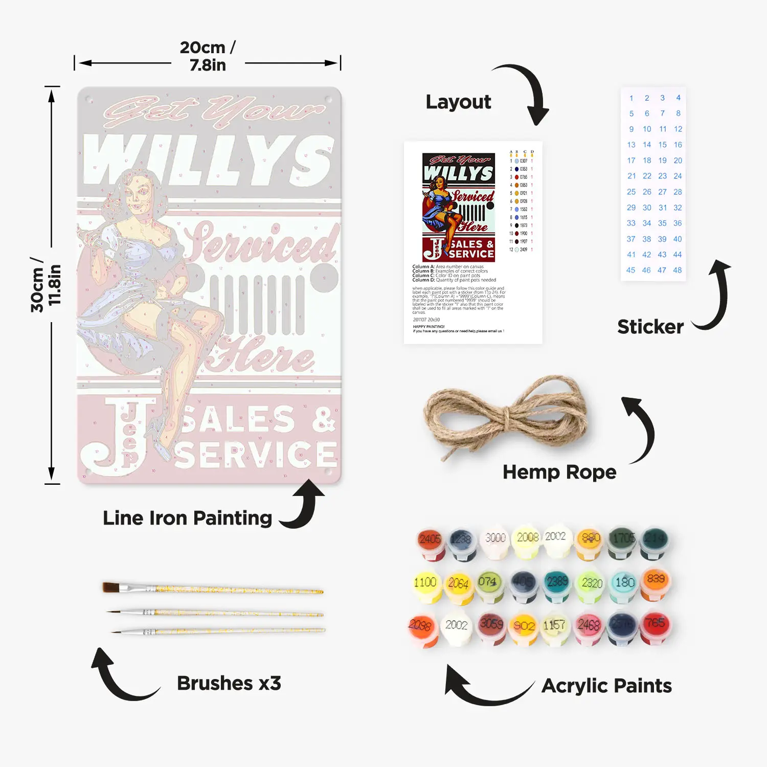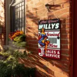 Add a touch of vintage charm to your home or bar with the Get Your Willys Serviced Here DIY metal poster. This unique piece measures 20x30cm or 7.8×11.8 inches and features rounded corners for a sleek finish. The vintage design makes it a perfect addition for those who love classic themes. It’s an excellent way to personalize your space with a nostalgic feel.