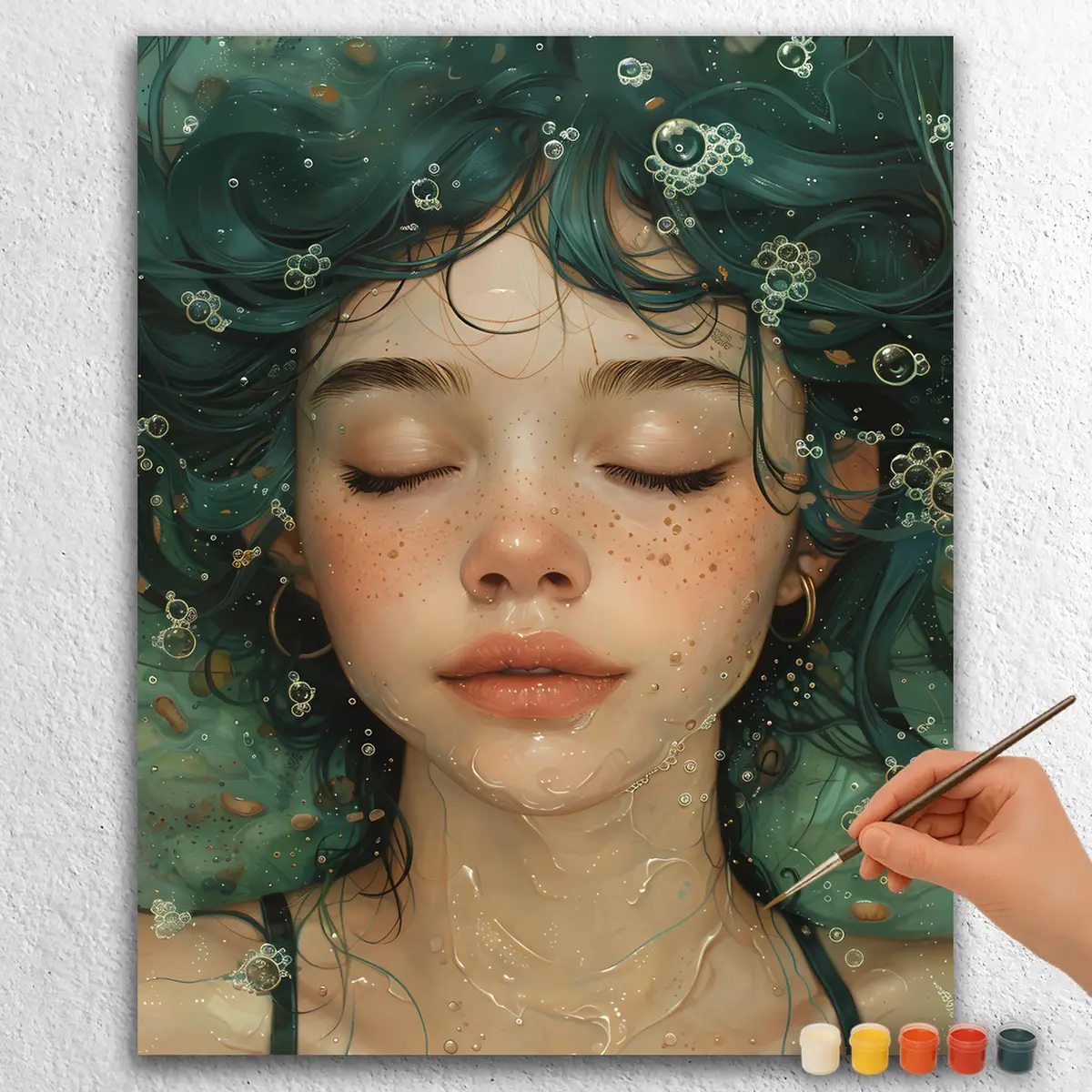 Bring home the vibrant Girl with Avocado paint by numbers kit. This delightful piece features a young girl surrounded by lush greenery, holding an avocado. The artwork is full of life, capturing the innocence of childhood.
