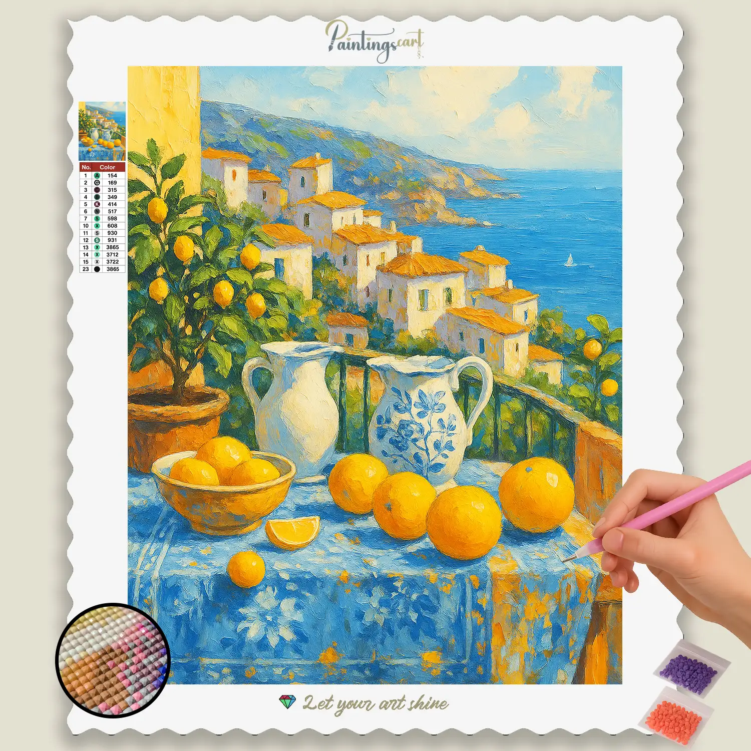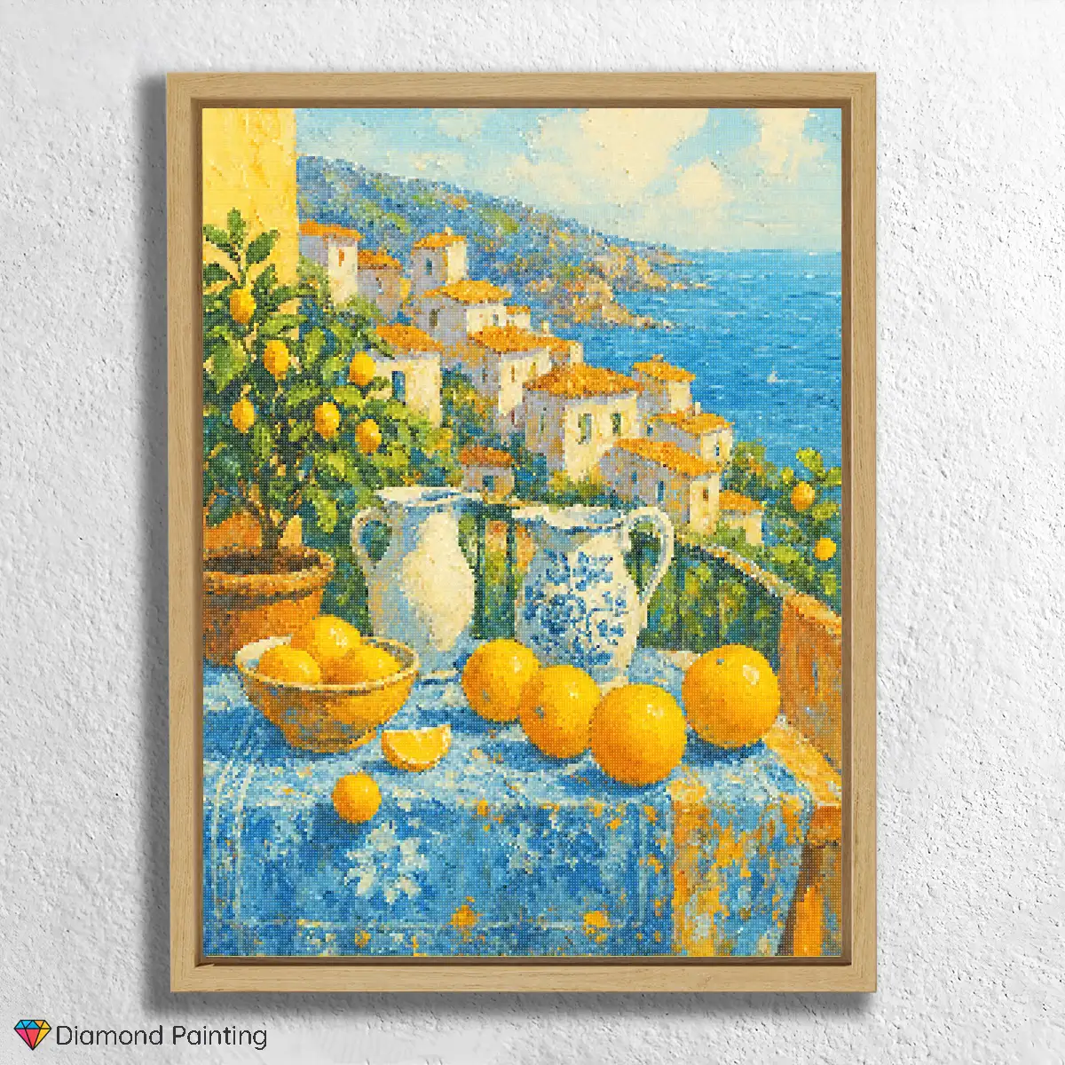 Bring the sunny serenity of the South into your home with our picturesque Diamond Painting “Mediterranean Still Life by the Sea”! This exquisite motif captures the peaceful beauty of a scene where fresh fruits and local vessels reflect the gentle life on the Mediterranean. Imagine sun-drenched citrus fruits, a rustic wine carafe, and perhaps a few olive branches, all artfully arranged against the shimmering expanse of the sea. Each glittering stone helps you create the vibrant colors, soft textures, and relaxed atmosphere reminiscent of a perfect vacation day by the water. It’s a tribute to the gifts of nature, the Southern way of life, and the joy that the beauty of simple things brings into our lives.