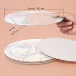 The placemats have a diameter of 20 cm/7.87 inches and a thickness of around 0.3 cm/ 0.11 inches.