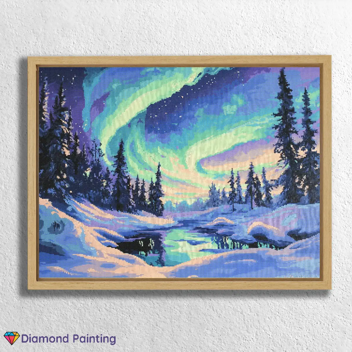 Escape into a magical winter night with our breathtaking Diamond Painting “Northern Lights over Snow-Covered Landscape”! This captivating design captures the celestial ballet of the Aurora Borealis, dancing in vibrant colors over a serene, snow-covered landscape. Each shimmering diamond helps you bring the mysterious glows of the night sky and the peaceful, wintry expanse beneath the starry canopy to life. It’s a tribute to the pristine beauty of arctic nature and the wondrous power of the universe that consistently leaves us in awe. An ideal Diamond Painting for anyone who loves mystery, the tranquility of winter, and the breathtaking splendor of the Northern Lights.