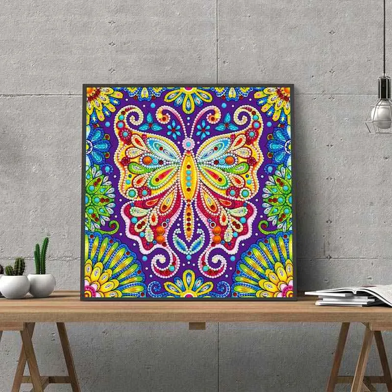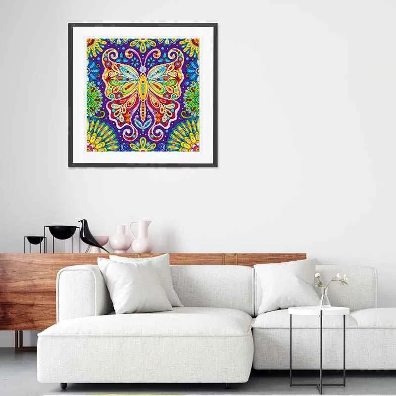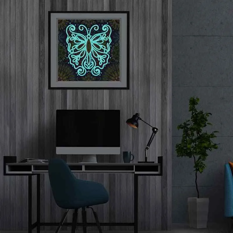 Unleash a kaleidoscope of colors with our ‘Rainbow Butterfly’ Diamond Painting! This artwork celebrates the vibrant diversity of the butterfly world. By day, the motif is an explosion of luminous colors reminiscent of a rainbow. But at night, the magic unfolds: special glow-in-the-dark diamonds in the wings begin to shimmer, tracing the intricate patterns in a soft, mysterious light.