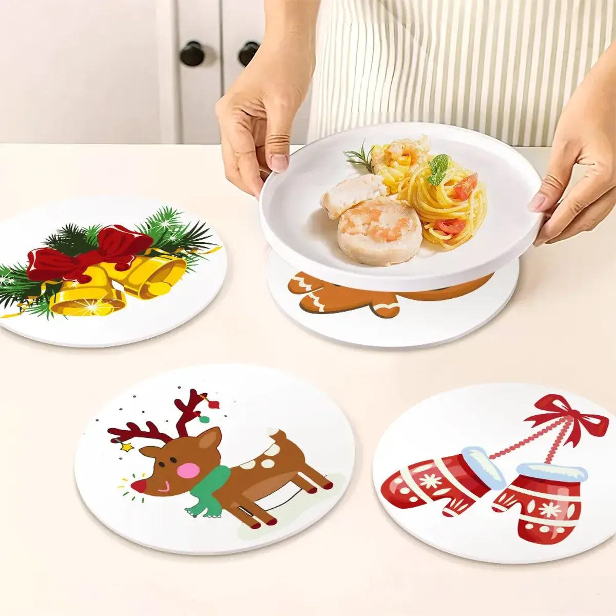 The placemats have a diameter of 20 cm/7.87 inches and a thickness of around 0.3 cm/ 0.11 inches.