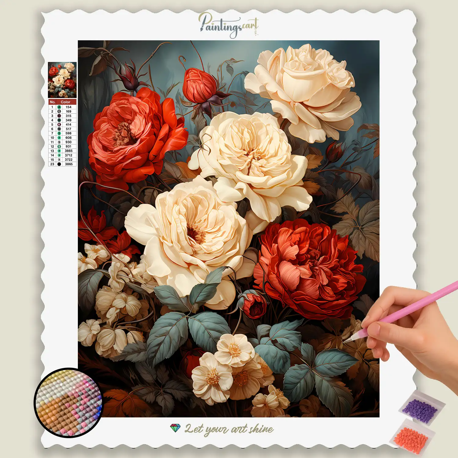 Create a sparkling masterpiece that warms the soul and creates an aura of coziness and natural elegance. This high-quality Diamond Painting Set not only offers a wonderfully relaxing and creative escape but also a breathtaking result that you can proudly display in your home. Whether as a charming eye-catcher in any room, an inspiring addition to your collection, or as a perfect gift for gardeners, romantics, and all who appreciate the special colors of autumn – this Diamond Painting kit is a fabulous way to capture the allure of the Roses of Autumn in a shimmering work of art.