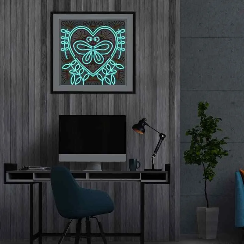 This set is the perfect choice for romantics and dreamers. It’s a highlight of our collection of luminous paintings, telling a deeper, emotional story. Crafting the delicate butterfly wings is a wonderfully meditative experience. This motif makes a heartfelt gift idea for a special person for an anniversary, Valentine’s Day, or simply as a token of affection. Create a glowing symbol of love that brings joy day and night.