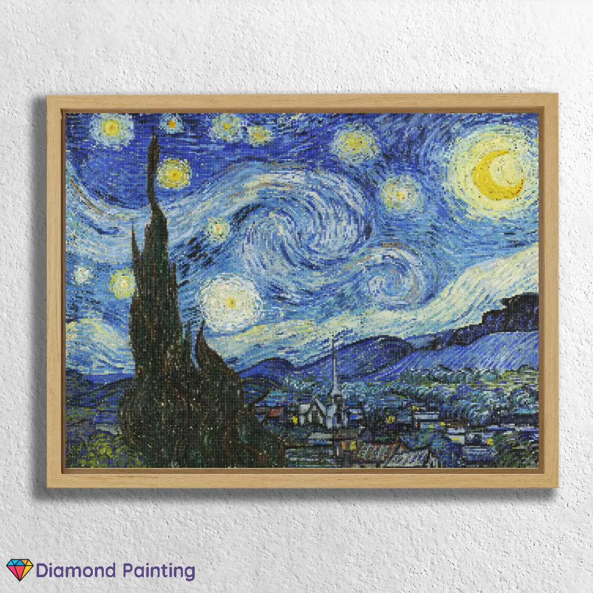 Immerse yourself in a universe full of art and magic with our iconic Diamond Painting “Starry Night – Van Gogh”! This extraordinary design is a brilliant tribute to Vincent van Gogh’s world-famous masterpiece, capturing the turbulent yet beautiful night sky over Saint-Rémy-de-Provence. Each glittering stone helps you recreate the hypnotic swirls, the luminous stars, and the dark, towering cypress in the unmistakable style of Van Gogh. It’s an artistic journey into the depth of emotions and the infinite expanse of the cosmos. An ideal Diamond Painting for art lovers who want to be inspired by the expressive colors of Impressionism and the genius of this visionary artist.