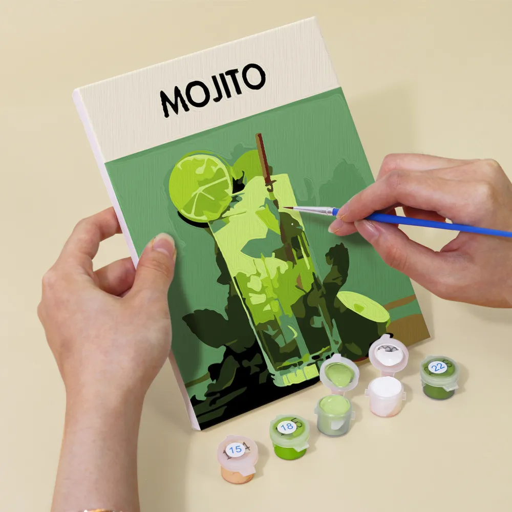 Bring the refreshing feeling of summer to your canvas with the “Summer Mocktails” Mini Paint by Numbers set. The colorful drinks with fruits and ice exude lightness and joy – perfect for a little creative time out. This handy set is ideal for beginners, children, or as a cheerful DIY gift. Included are a pre-printed mini canvas, matching acrylic paints, and fine brushes. Simply relax, paint, and feel the summer.