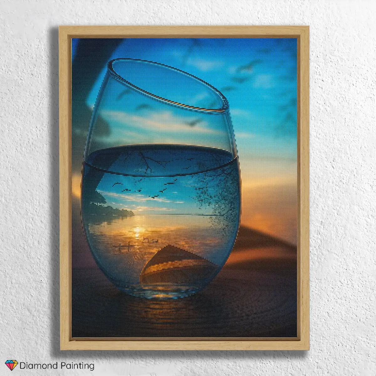 Experience the magic of the moment with our Diamond Painting “Sunset Through a Water Glass”! This captivating motif captures the breathtaking beauty of a sunset uniquely reflected through the refraction of a water glass. A masterpiece of nature, captured in a diamond painting, bringing peace and contemplation into your home. Perfect for adult diamond painting enthusiasts and anyone seeking a special challenge.