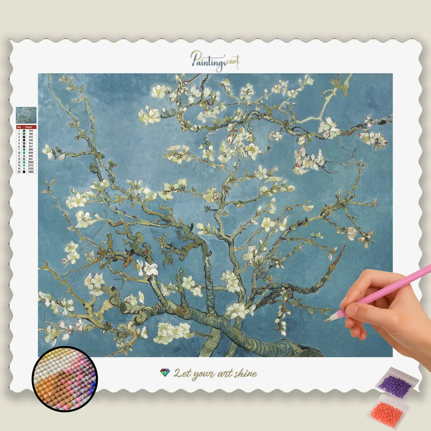 Discover the delicate beauty of nature with our enchanting Diamond Painting “The Almond Tree Plant”! This elegant motif captures the exquisite splendor of an almond tree, perhaps in full bloom or with ripe fruits, conveying a sense of spring and abundance. Each sparkling gem helps you bring to life the delicate petals or the crisp texture of the almonds and the soft surrounding light. It is a tribute to the quiet grace of the plant world and the connection to the cycles of nature. An ideal Diamond Painting for anyone who appreciates floral motifs, botanical art, and a calm, natural aesthetic in their home.