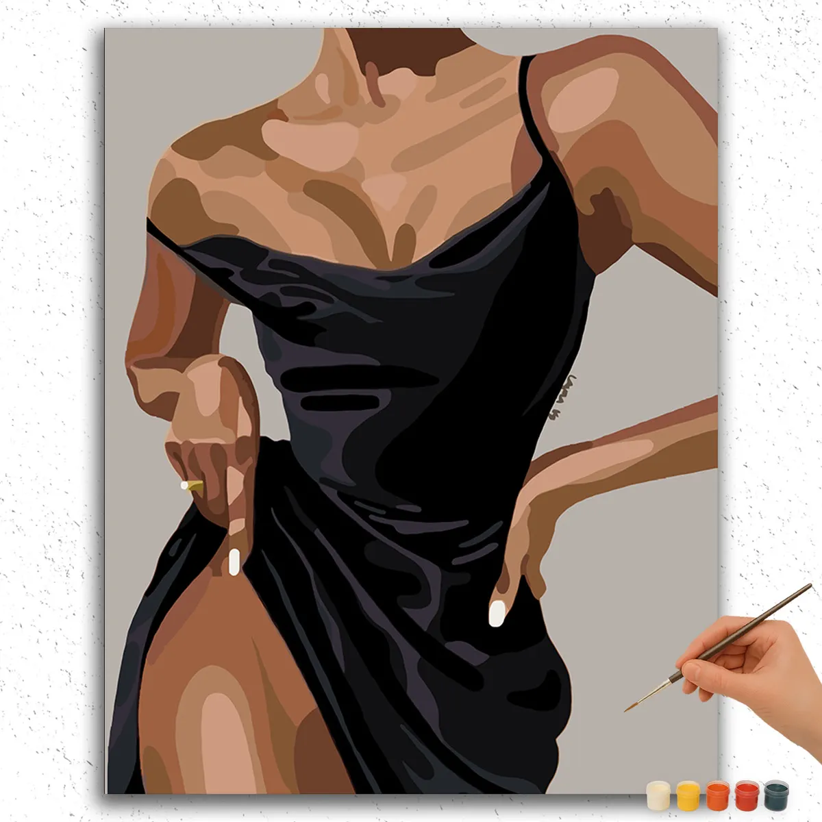 Transform your space with “The Beauty in Black” DIY painting kit. This elegant artwork features a stunning black dress design that brings sophistication to any room. The kit includes all you need: pre-numbered canvas, quality acrylic paints, and brushes.