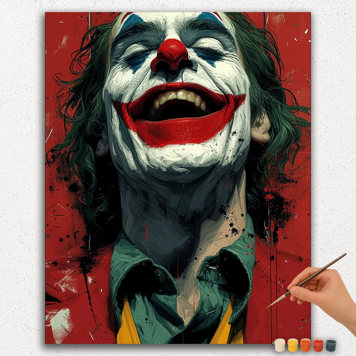 Bring the iconic Joker to life with our captivating Paint by Numbers kit. This set lets you create a stunning portrait of the famous Batman villain using simple numbered sections and matching paints.
