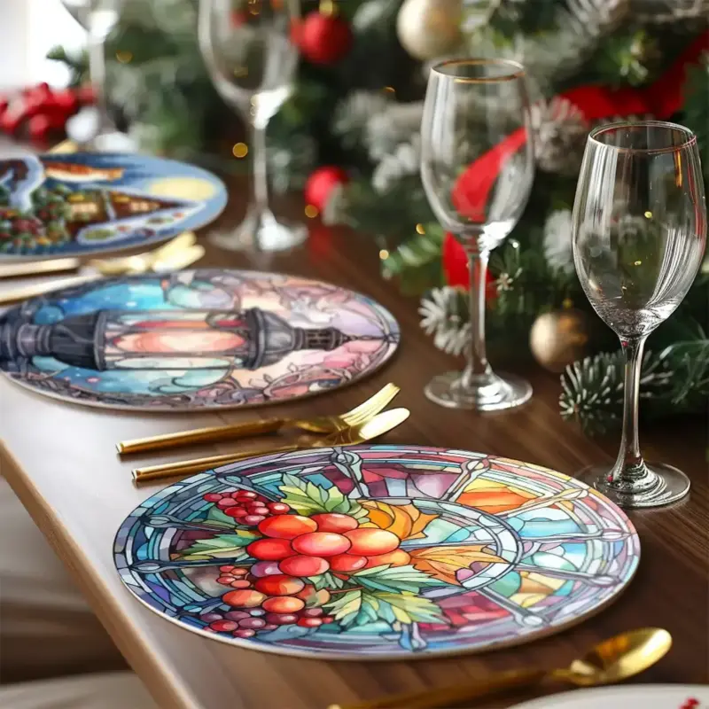 The placemats have a diameter of 20 cm/7.87 inches and a thickness of around 0.3 cm/ 0.11 inches.