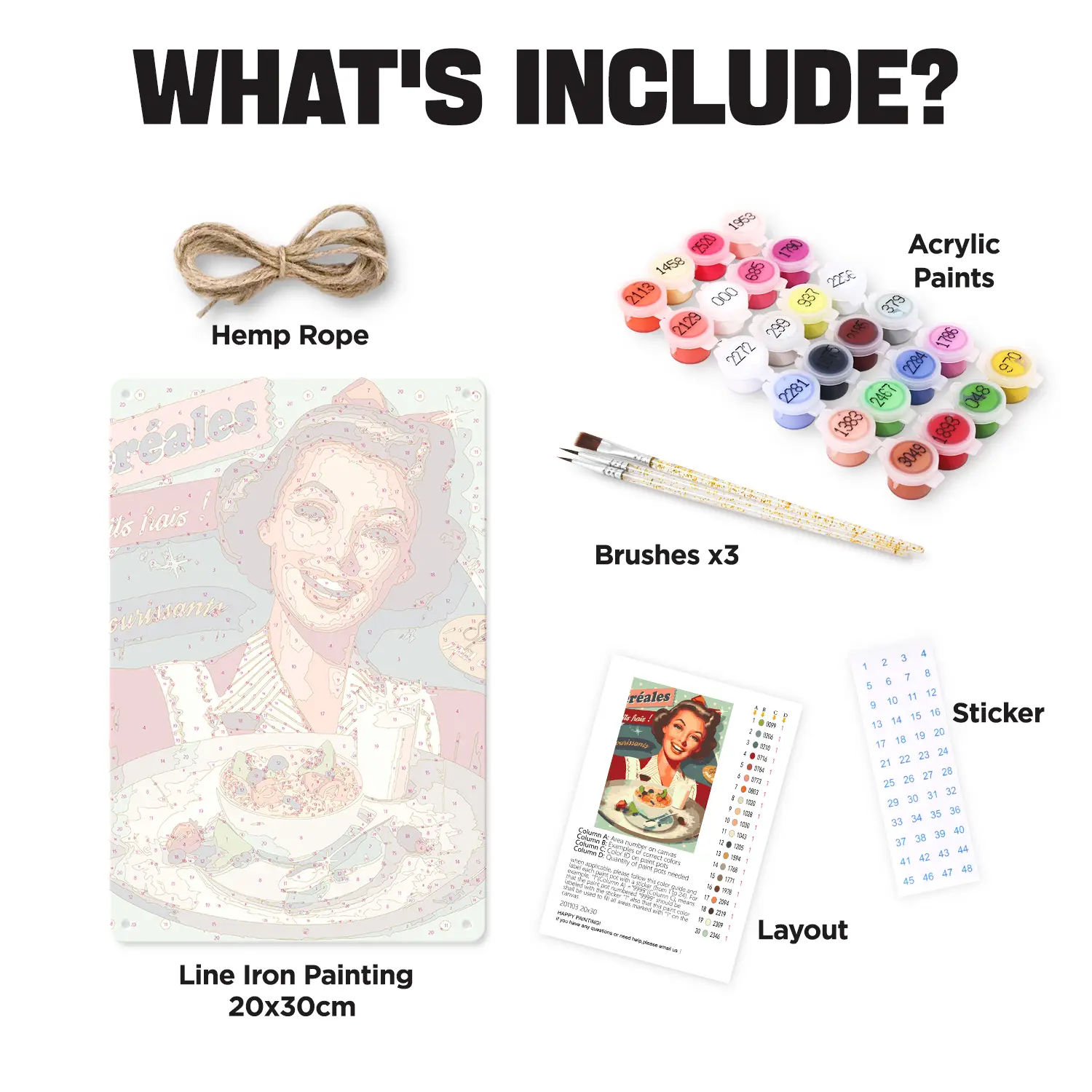 You will get all the tools and accessories required to complete your metal poster paint by numbers project in the kit.